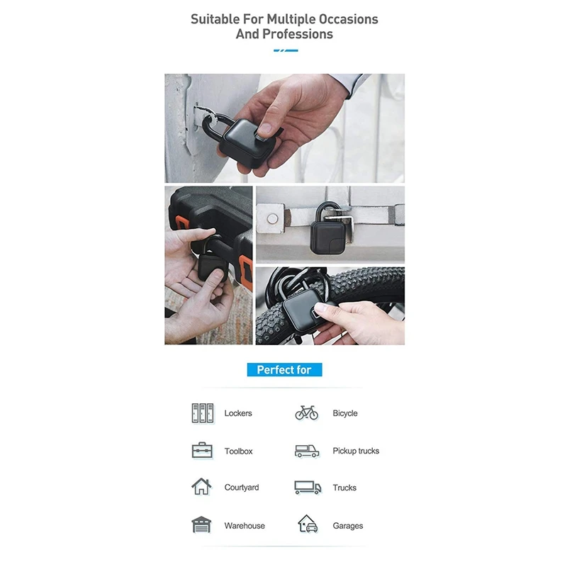 Smart Biometric Fingerprint Padlock Rechargeable Cable Padlock for OfficeBackpackLockerGolf BagsHan